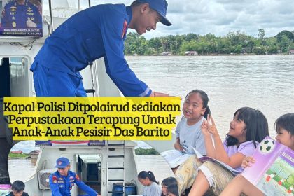 Kapal Polisi Ditpolairud Sediakan Perpustakaan Terapung Untuk Anak-Anak Pesisir Das Barito