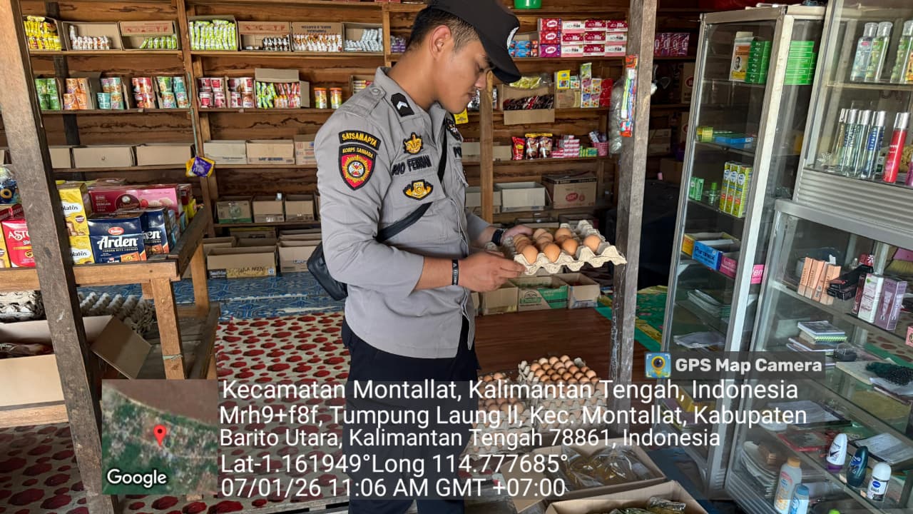 *Tribratanews.kalteng.polri.go.id – Polres Barito Utara* – Dalam rangka memastikan ketersediaan dan kestabilan harga bahan pokok (sembako), Polsek Montallat melaksanakan pengecekan langsung di sejumlah pasar dan toko sembako di wilayah hukum Polsek Montallat, Siang *Rabu 07 Januari 2026. Pukul 11.00 Wib.*