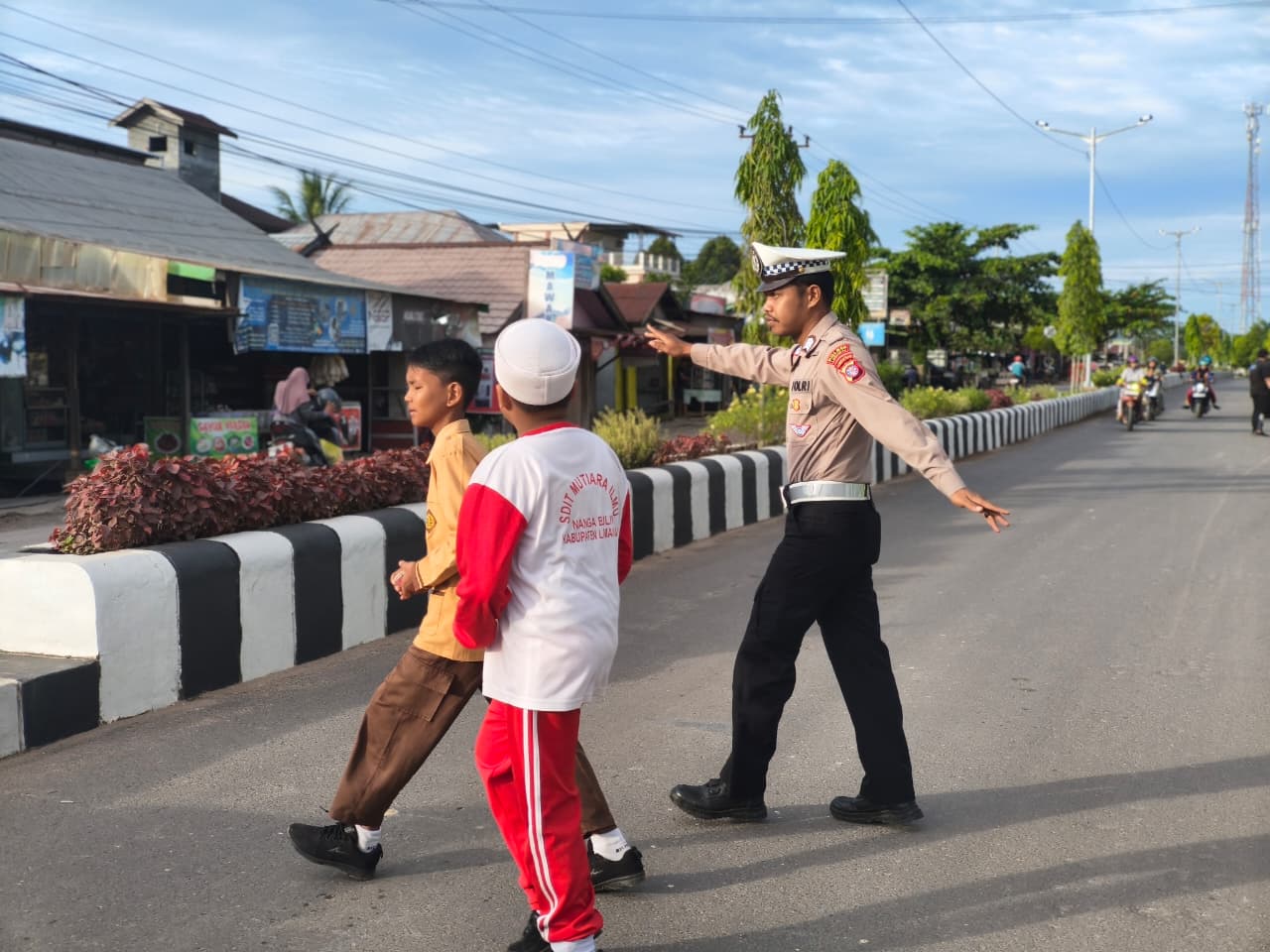 Lamandau – Personil dari Sat Lantas Polres Lamandau melaksanakan pelayanan pagi dengan membantu para siswa MIN Negeri Nanga Bulik menyeberangi jalan menuju sekolah, Jumat (9/1/26) Pagi.