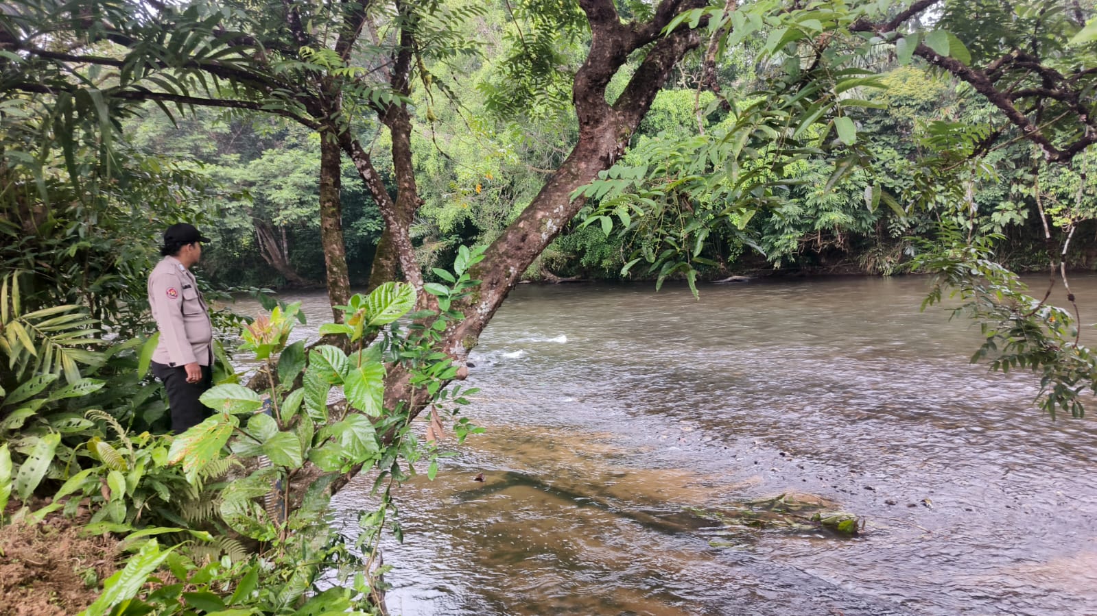 Lamandau – Polsek Delang, Piket Polsek Delang melakukan kegiatan rutin pengecekan debit air DAS Delang di TMA Kelurahan Kudangan RT.02 Kecamatan Delang, Rabu (15/4/26) Pagi
