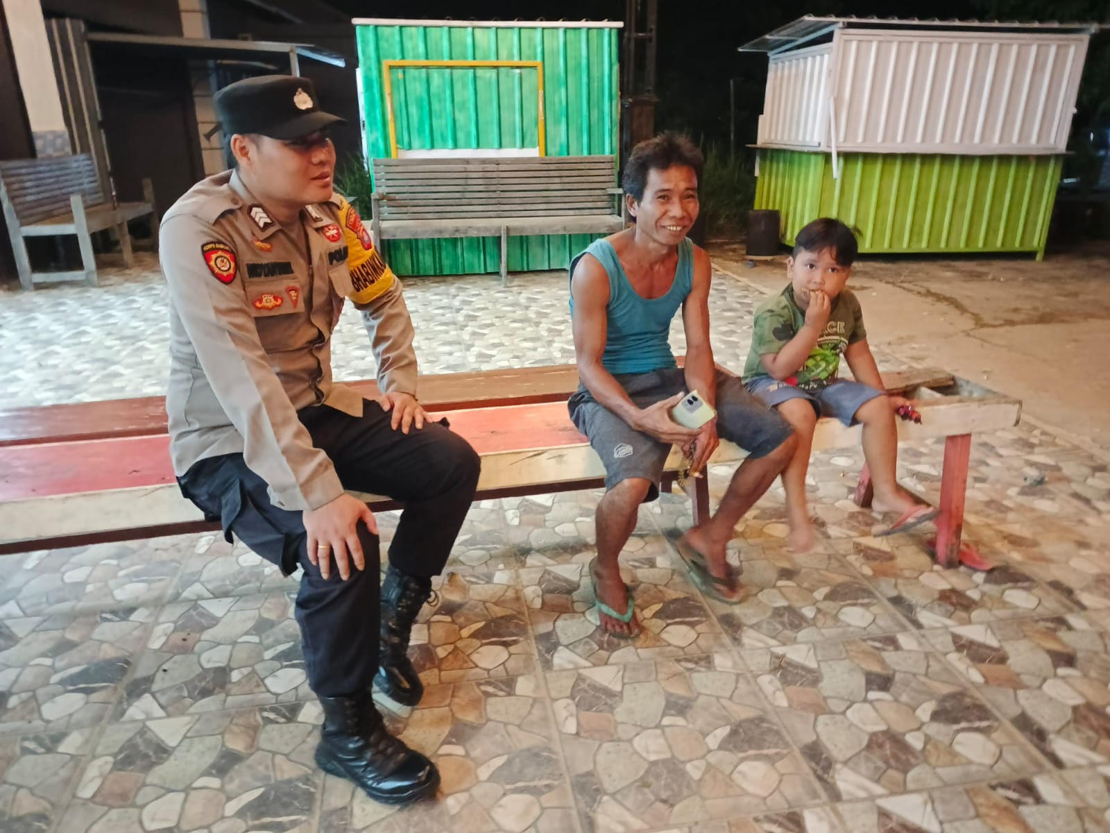 Menyambangi pekerja ditempat kerjanya dan pada kesempatan yang baik tersebut, Personil Polsek berdialog menyampaikan pesan-pesan kamtibmas. Berhubung cuaca yang tidak menentu untuk membatasi aktivitas di luar rumah serta untuk tetap disiplin menjaga kesehatan.