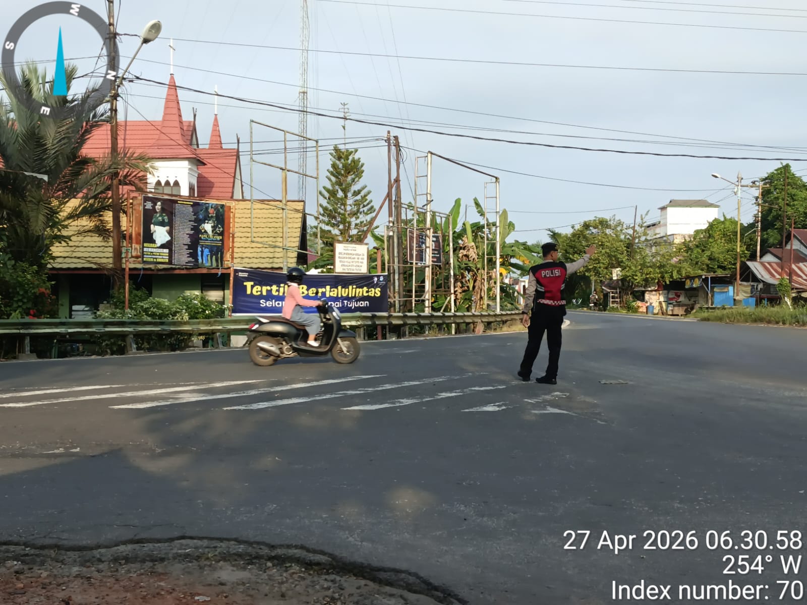 Samapta Polres Katingan – Dalam upaya menjaga kelancaran arus lalu lintas serta memberikan rasa aman kepada masyarakat, personel Satuan Samapta Polres Katingan melaksanakan kegiatan pengaturan (gatur) pagi di sejumlah titik rawan kemacetan, senin (27/4/2026). Pagi.