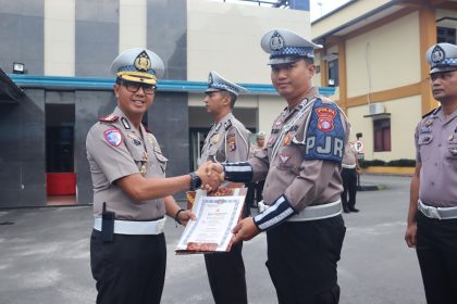 Palangka Raya – Direktur Lalu Lintas Polda Kalteng Kombes Pol Yusep Dwi Prastinya, S.H., S.I.K., M.H. memberikan penghargaan kepada personel Ditlantas, Selasa (6/1/2026) pagi. Dalam amanatnya D...